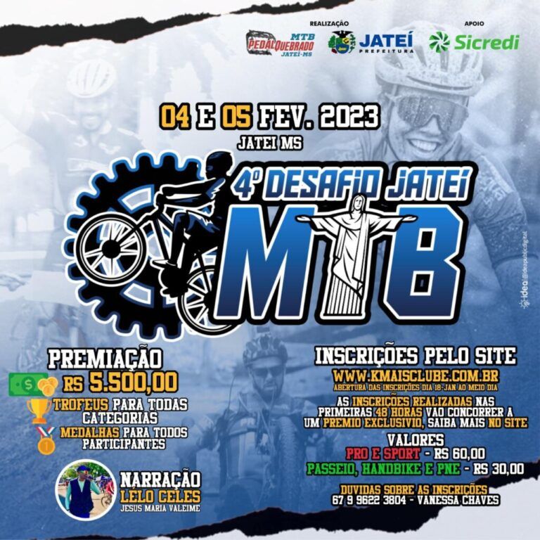 Dia 05 de fevereiro de 2023, acontecerá o IV Desafio Jatei de MTB de Jatei, sediado na cidade de Jateí – MS, onde o local