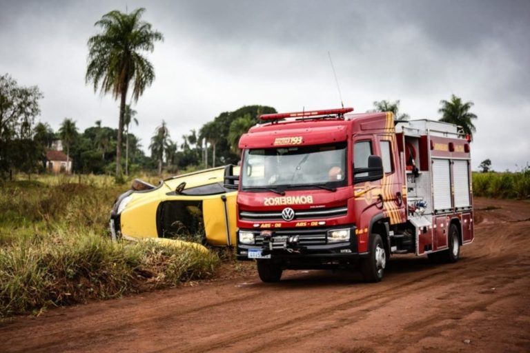 Motorista perde controle, capota carro na MS-060 e cinco são socorridos pelos bombeiros