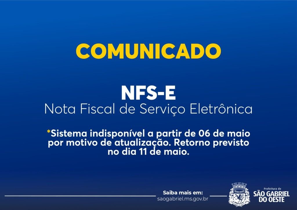 A Prefeitura de São Gabriel do Oeste, por meio da Secretaria Municipal de Administração e Finanças, informa aos prestadores de serviços que o sistema de