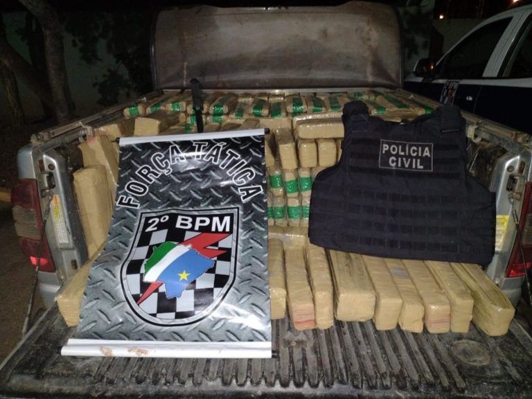 Na segunda-feira (30/05), a equipe da Força Tática recebeu uma denúncia, onde haveria uma caminhonete S10 de cor prata, com carregamento de drogas na área