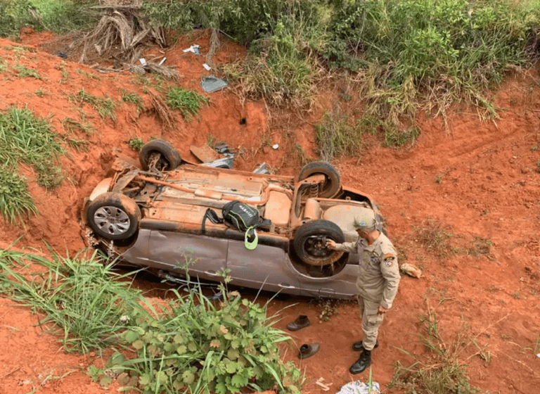 Um motorista capotou o veículo que conduzia durante a madrugada desta quarta-feira (13), na BR-163 sentido Sonora, a 351 quilômetros de Campo Grande, após atropelar uma anta.