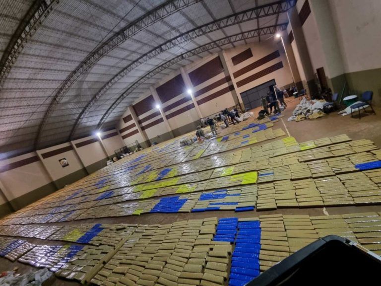 Agentes especiais da Senad (Secretaria Nacional Antidrogas) do Paraguai apreenderam quase 22 toneladas de maconha em um acampamento descoberto na região da Colônia Estrella, na