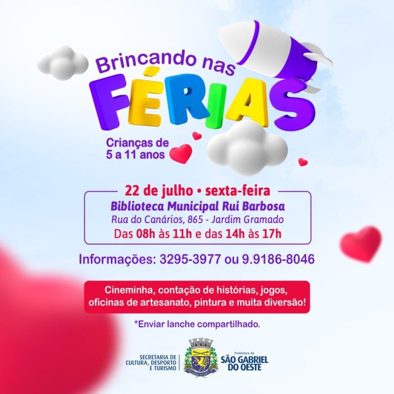 A Prefeitura de São Gabriel do Oeste, por meio da Secretaria Municipal de Cultura, Desporto e Turismo, realizará nesta sexta-feira (22) um dia de atividades