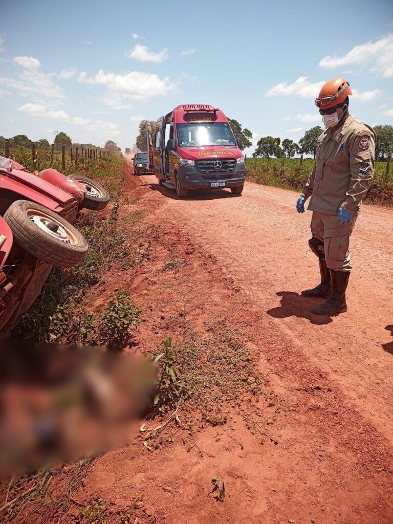 Um idoso, de 63 anos, morreu neste domingo (13) após ser arremessado e esmagado pelo próprio carro durante um acidente na estrada vicinal, que liga