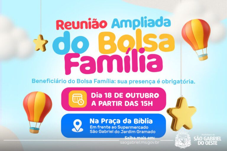 A Prefeitura Municipal de São Gabriel do Oeste, por meio da Secretaria de Assistência Social, realizará no dia 18 de outubro, às 15h, a Reunião