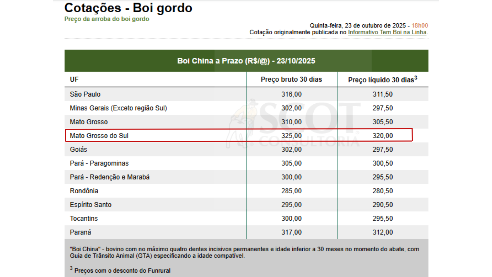 “Hoje, Mato Grosso do Sul tem a melhor cotação de boi China do país”, completa a Acrissul.