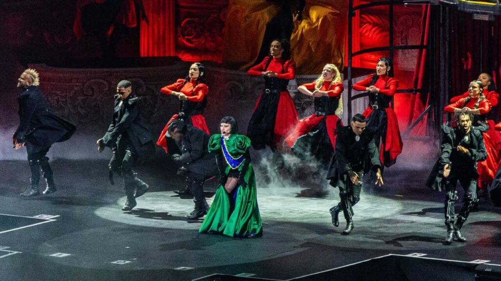 O show foi dividido em cinco atos, com direito a diversas trocas de roupa e um cenário que lembra uma peça de teatro – a cantora chama de “ópera gótica”. O clima também colaborou para a multidão que se formou desde cedo para ver a estrela pop de perto.