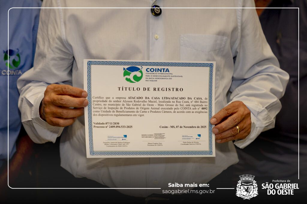 O momento simbolizou o resultado de um trabalho técnico e conjunto que fortalece o comércio local e amplia as oportunidades para os empreendedores da região norte de Mato Grosso do Sul. “O selo SIM é mais do que um certificado, é o reflexo de um trabalho sério e de um compromisso coletivo com a segurança alimentar e a valorização de quem produz. São Gabriel do Oeste segue dando exemplo de gestão, incentivando o crescimento sustentável e apoiando quem faz a economia girar”, destacou o prefeito Leocir Montanha.