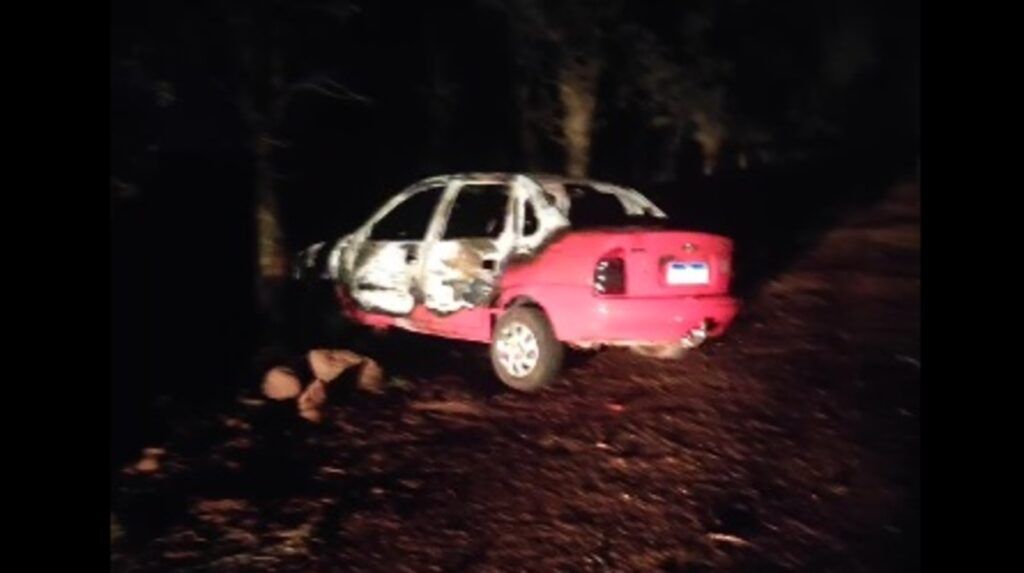 O carro, um Corsa Classic, vermelho, foi encontrado em chamas na região da MS-465, conhecida como Estrada do Suez. A princípio, o Corpo de Bombeiros foi acionado com a informação de possível acidente de trânsito.