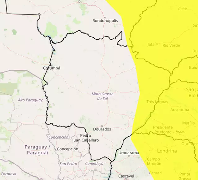 Na Sexta-feira Santa, o padrão se mantém, com sol, calor e variação de nuvens. Em Campo Grande, os termômetros ficam entre 23°C e 32°C, enquanto Dourados pode chegar a 35°C e Corumbá segue com máximas próximas dos 37°C. Há chance de chuva isolada em pontos do norte e leste, como Coxim e Paranaíba, mas sem volumes expressivos.