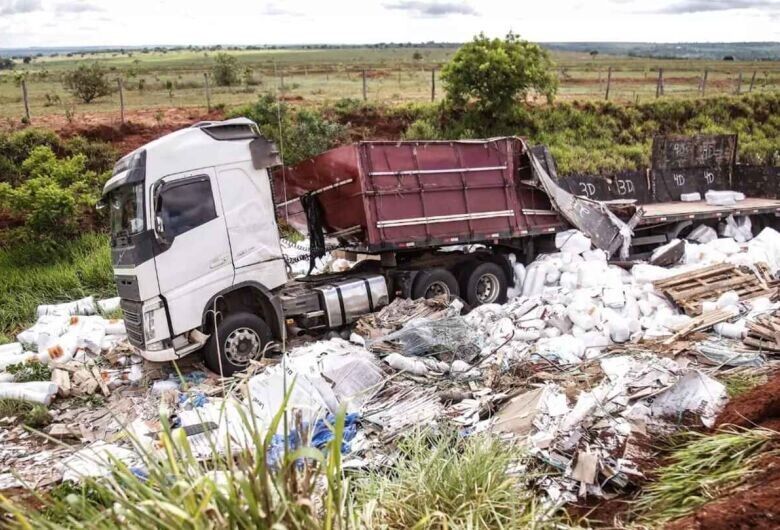 Motorista perdeu controle de direção e acabou tombando uma carreta carregada com porcelanato e bandejas de isopor de marmitex. O caso ocorreu na noite de terça-feira (14/12), na BR-163, em Campo Grande.