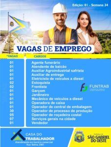 A Prefeitura Municipal de São Gabriel do Oeste, através da Casa do Trabalhador, está divulgando uma variedade de vagas de emprego. Essas oportunidades abrangem diferentes áreas e níveis de experiência, proporcionando uma série de opções para os interessados em ingressar ou retornar ao mercado de trabalho.