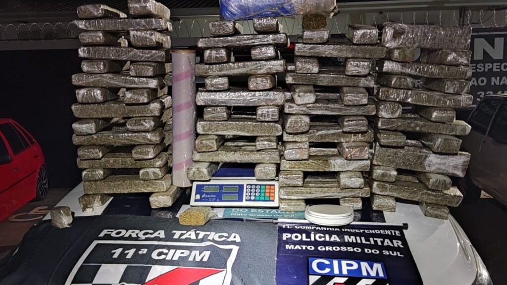 Homem de 26 anos foi preso com 107 tabletes de maconha, escondidos em uma residência para venda e num carro, na madrugada desta quinta-feira (15), no Bairro Jardim Presidente, em Campo Grande. Ele confessou armazenar o entorpecente a mando de um presidiário.