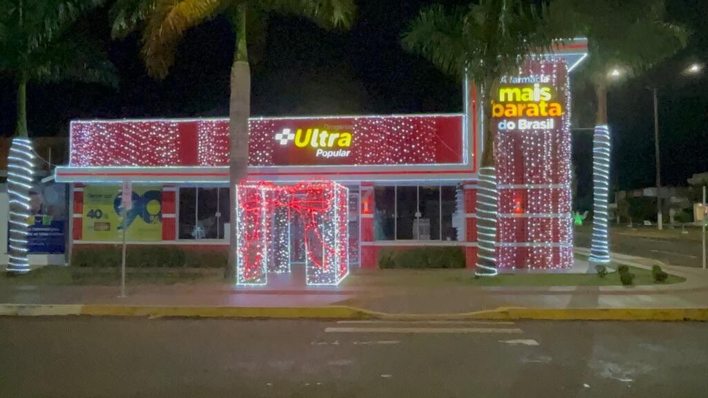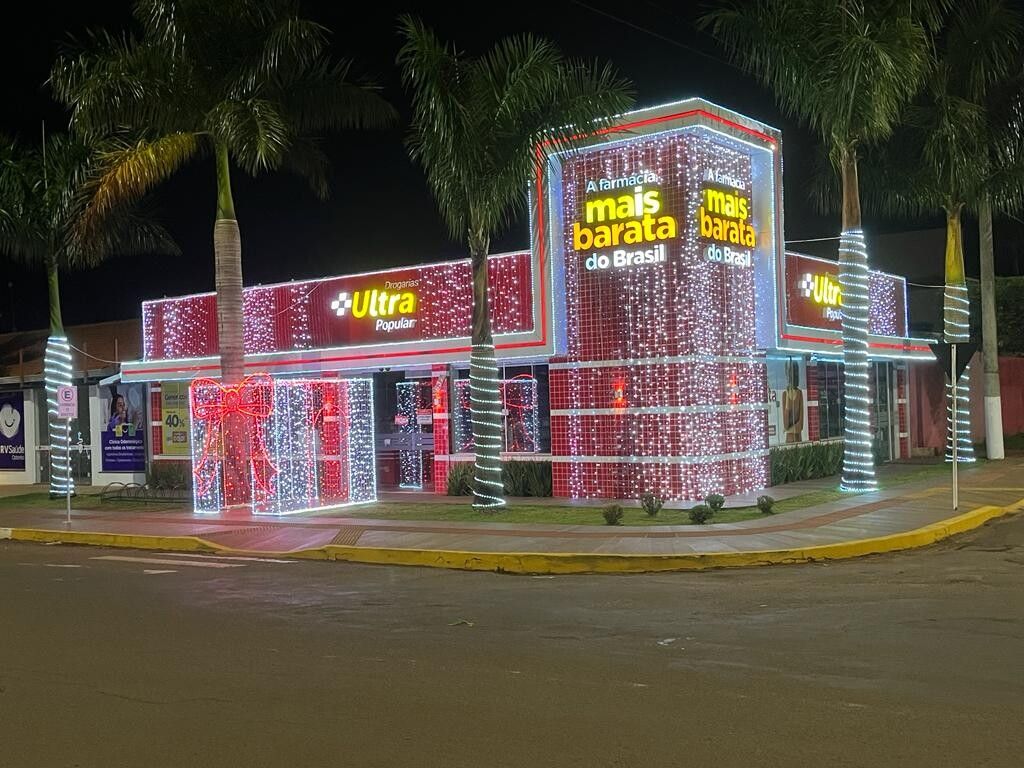 São Gabriel do Oeste é uma cidade famosa pela sua decoração natalina, feita com garrafas pets. A cidade atrai não só os moradores locais, mas, também, turistas de todo o Mato Grosso do Sul e de outros estados, para admirar as “luzes do cerrado” como é chamada a linda decoração que já é tradição na cidade a muitos anos. Porém esse ano quem vem visitar as decorações que estão muito bonitas, tem a oportunidade de observar, bem ao lado da grande árvore de natal da avenida Getúlio Vargas, a decoração das Drogarias Ultra Popular. A farmácia que já é conhecida por vender remédios e medicamentos a preços realmente baratos, agora passa a ser admirada pela sua linda decoração natalina, composta por muitas luzes, sendo que o contraste do vermelho de suas paredes de ACM tem deixado a decoração ainda mais encantadora. Queremos registrar aqui os nossos parabéns ao casal Pedro e Priscila pelo bom gosto e principalmente pela contribuição para abrilhantar ainda mais a decoração de natal de São Gabriel do Oeste.