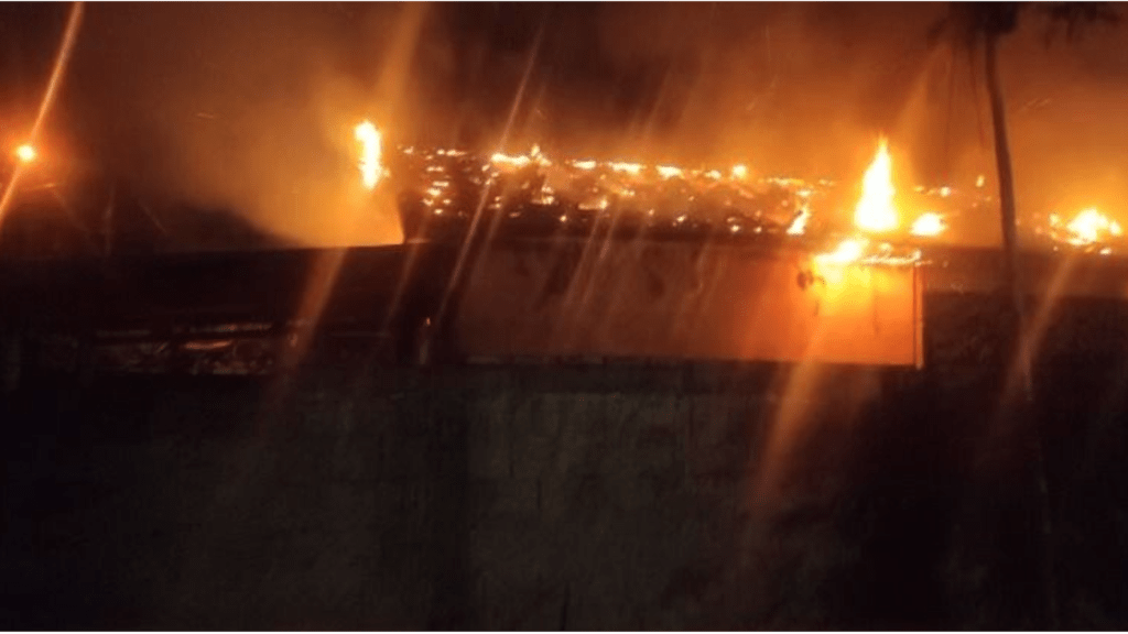 O incêndio destruiu a casa. O homem foi levado para a delegacia.