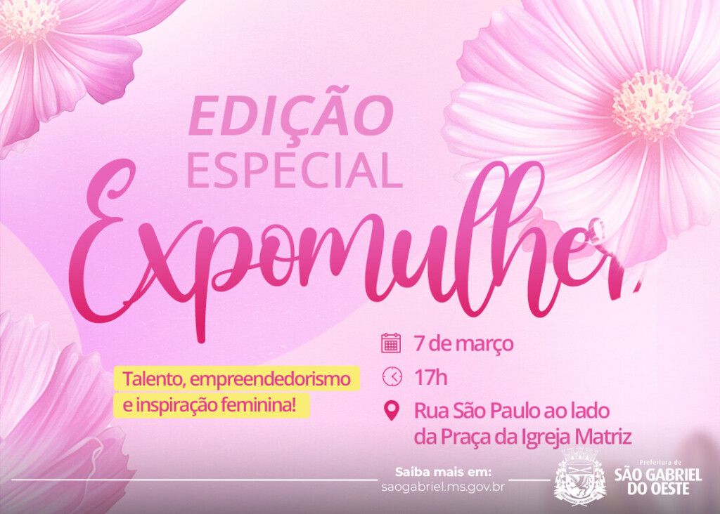 Com a proximidade do Dia Internacional da Mulher, São Gabriel do Oeste se prepara para uma série de eventos em comemoração à data, incluindo mais uma edição da ExpoMulher – Feira de Negócios e Empreendedorismo Feminino. Com o apoio da Prefeitura Municipal, o evento será realizado na sexta-feira, 7 de março, na rua São Paulo ao lado da Praça da Igreja Matriz.