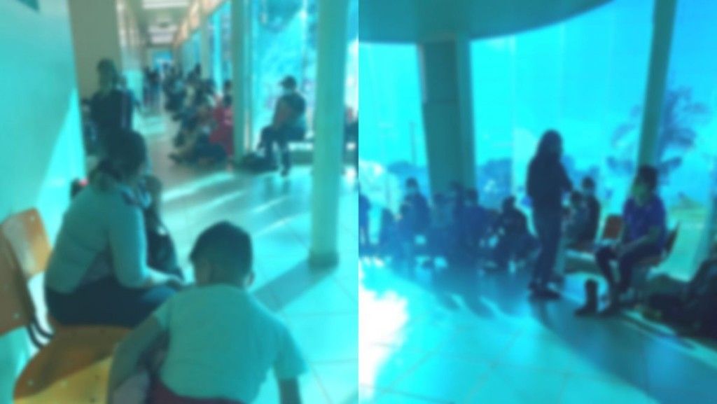 “Não sei que horas vamos sair daqui, as crianças estão todas com fome e não tem previsão”, lamentou a avó da menina que aguarda a fila para atendimento.