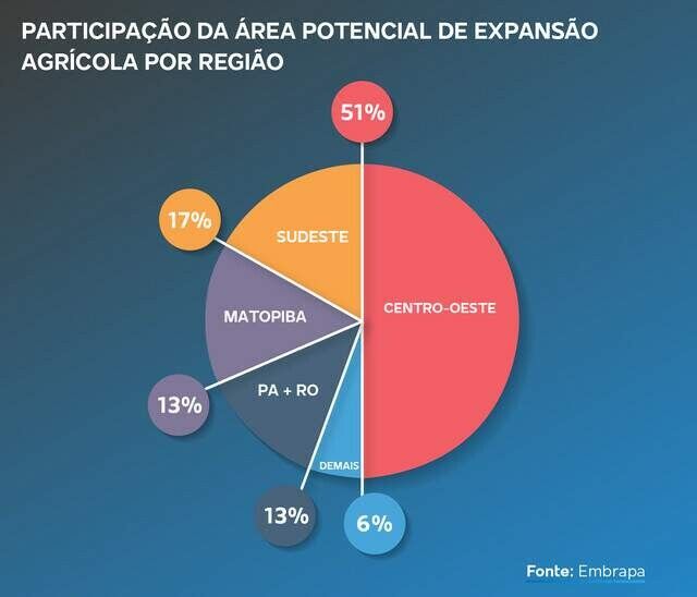 Maior produtora agrícola do País, a região Centro-Oeste, que concentra a maioria (51%) das áreas de pastagens degradadas com potencial de expansão agrícola, pode elevar em mais de R$ 30 mil por hectare, em média, o valor das pastagens degradadas convertidas em áreas produtivas. Para os especialistas do Itaú BBA, na média nacional, as terras de lavoura valem cerca de 2,4 vezes o preço das terras de pastagem equivalentes — embora a valorização varie entre regiões, dependendo da oferta de terras e das produtividades locais.