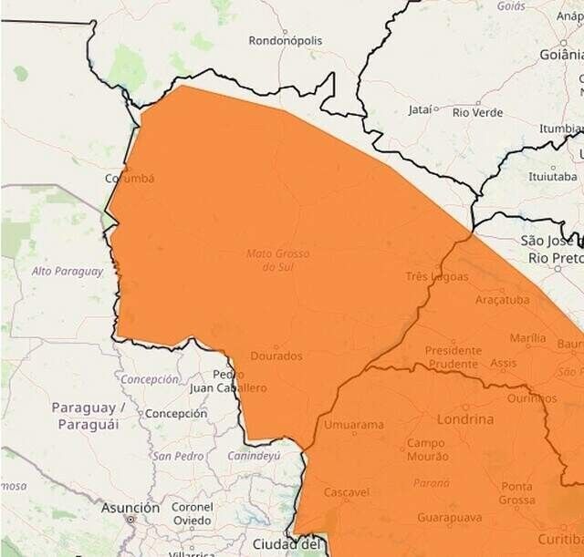 Todos os municípios de Mato Grosso do Sul estão sob alerta de tempestade neste fim de semana. O aviso do Inmet (Instituto Nacional de Meteorologia), considerado perigoso, começa no domingo (12) e termina na segunda-feira (13).