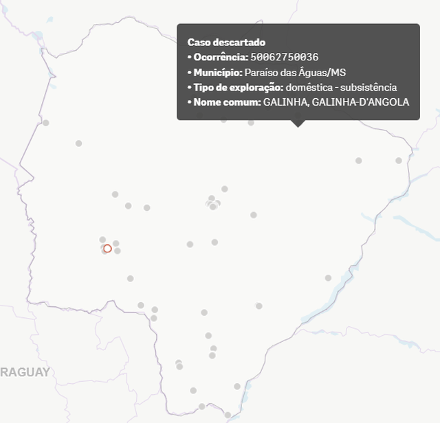 Mapa (Ministério da Agricultura e Pecuária) descartou, na tarde deste sábado (31), o caso suspeito de gripe aviária em uma galinha-d’angola doméstica criada no município de Paraíso das Águas, a cerca de 280 quilômetros de Campo Grande. Com isso, Mato Grosso do Sul volta a não ter investigações em andamento relacionadas à doença.