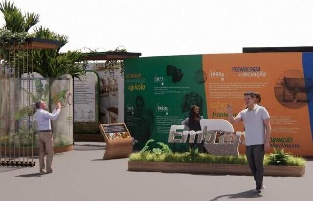 O Espaço Arena da Agrizone, Casa da Agricultura Sustentável, coordenada pela Embrapa, vai funcionar como uma vitrine de tecnologias, ciência e cooperação internacional, voltada à agricultura sustentável e ao combate à fome em meio aos desafios das mudanças climáticas.