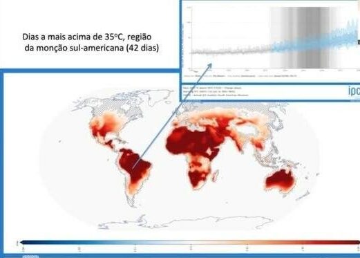 A projeção para um cenário de aquecimento de 2ºC até o fim do século é de aumento médio de 42 dias por ano com temperaturas acima de 35ºC na região.