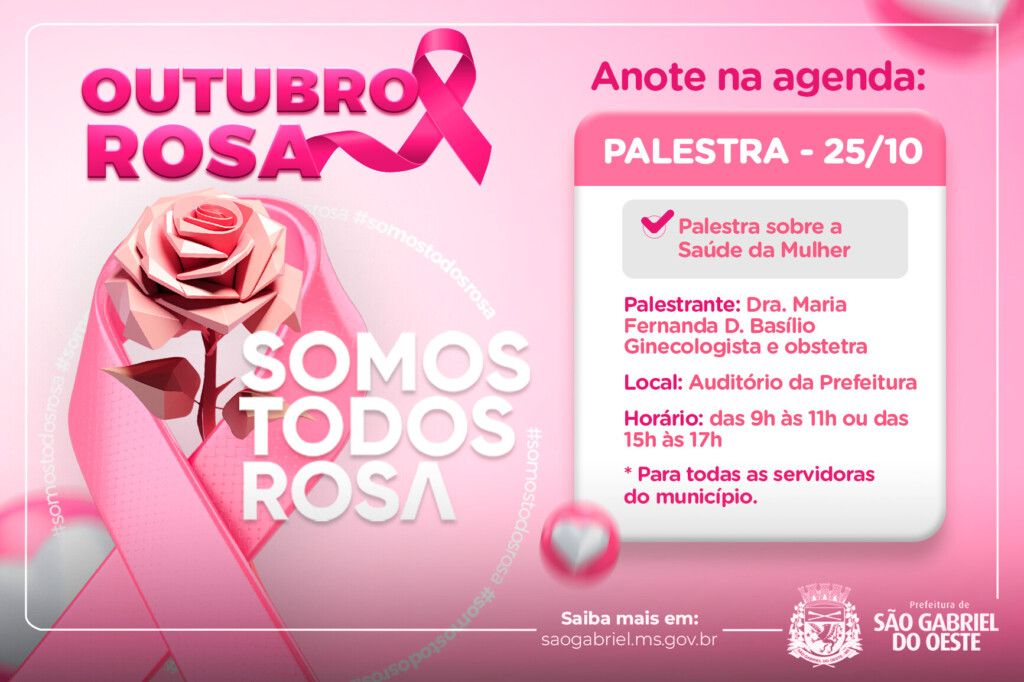 A conscientização da importância da saúde da mulher e a prevenção do câncer de mama são temas em destaque em São Gabriel do Oeste neste mês de outubro. Como parte das ações do Outubro Rosa, a Prefeitura de São Gabriel do Oeste, por meio do Departamento de Formação Continuada e Permanente e Secretaria de Saúde, está promovendo uma palestra informativa.