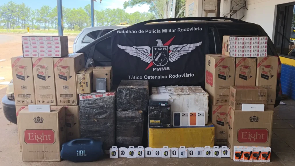 Ao fazer vistoria do veículo, policiais do BPMRv (Batalhão de Polícia Militar Rodoviária) identificaram diversos produtos de origem estrangeira. Conforme informações policiais, dentro do carroforam encontrados: