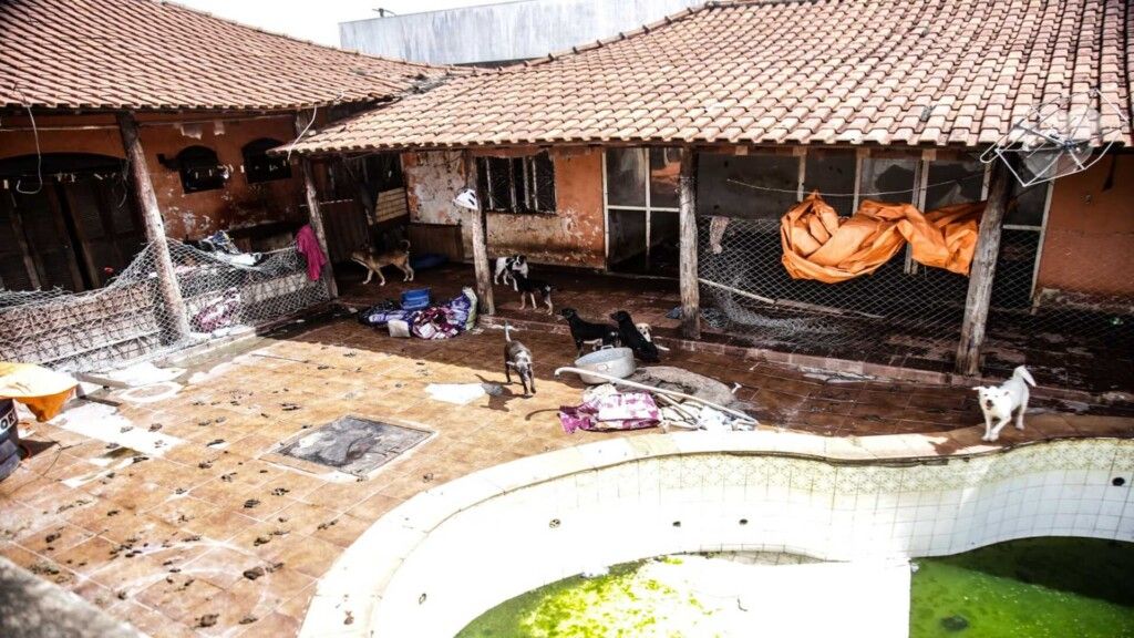 Conforme informado pelo delegado, os 55 gatos e cachorros encontrados hoje serão levados para essa chácara, na região da Chácara dos Poderes, e o local deve passar por vistoria também para verificar se está inapropriado. Elas já teriam abrigado cerca de 100 animais na residência onde o mandado de busca foi cumprido hoje.