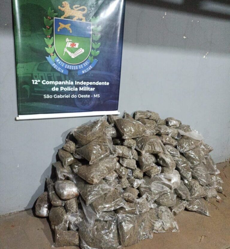 Na tarde da última quarta-feira (06), a 12ª Companhia Independente de Polícia Militar realizou a apreensão de aproximadamente 93 quilos e 945 gramas de substância análoga a Skunk, também conhecido como “super maconha” ou “maconha mais forte.” A droga estava em uma propriedade rural localizada a cerca de 10 quilômetros do município de São Gabriel do Oeste/MS.