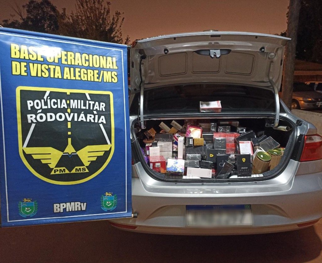 No interior do automóvel foram encontradas várias mercadorias de origem estrangeira, sem documentação legal de importação.