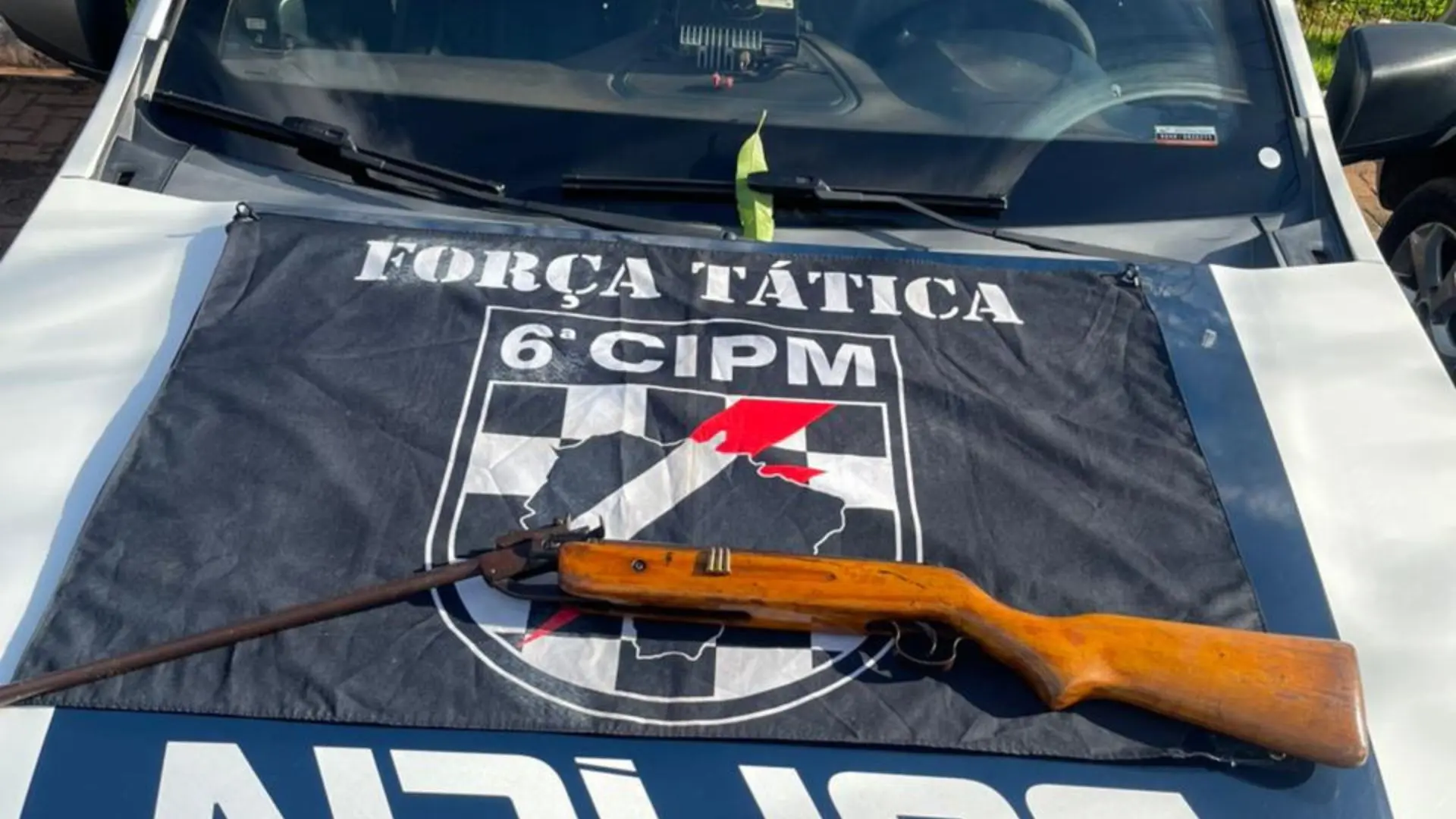 Em diligências no local, a PM encontrou um rifle com uma munição calibre 22 intacta no cano e três munições do mesmo calibre no guarda-roupa, de propriedade do agressor.