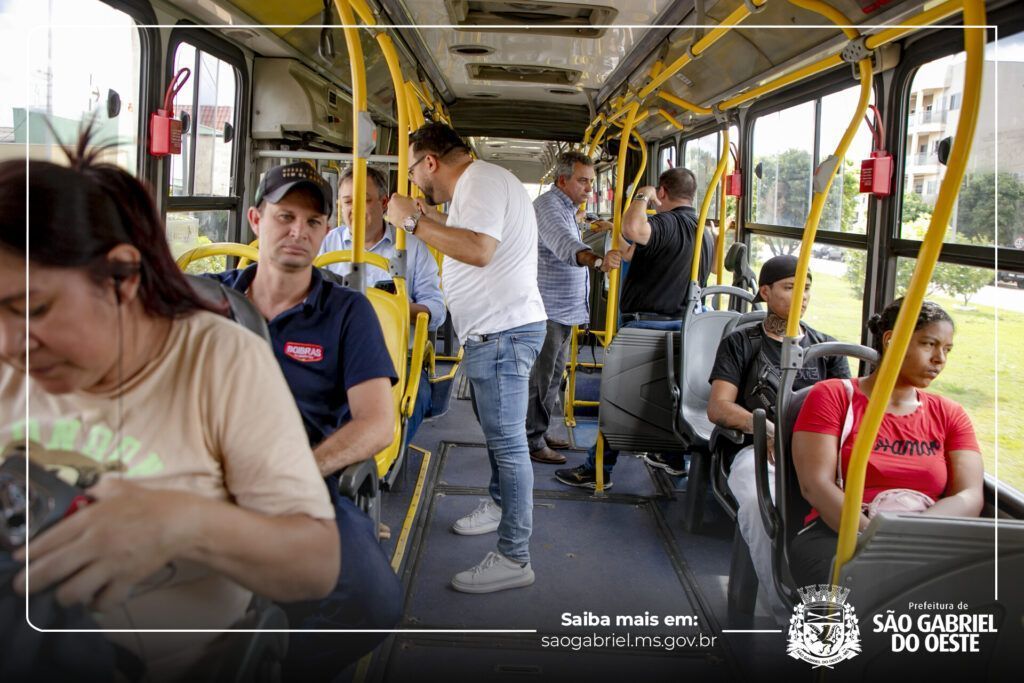 O prefeito Leocir Montanha acompanhou de perto a execução do serviço de transporte coletivo de passageiros em São Gabriel do Oeste. A agenda foi realizada a bordo de um dos novos ônibus articulados recentemente incorporados à frota, durante trajeto até o Parque Industrial, permitindo diálogo direto com os usuários.
