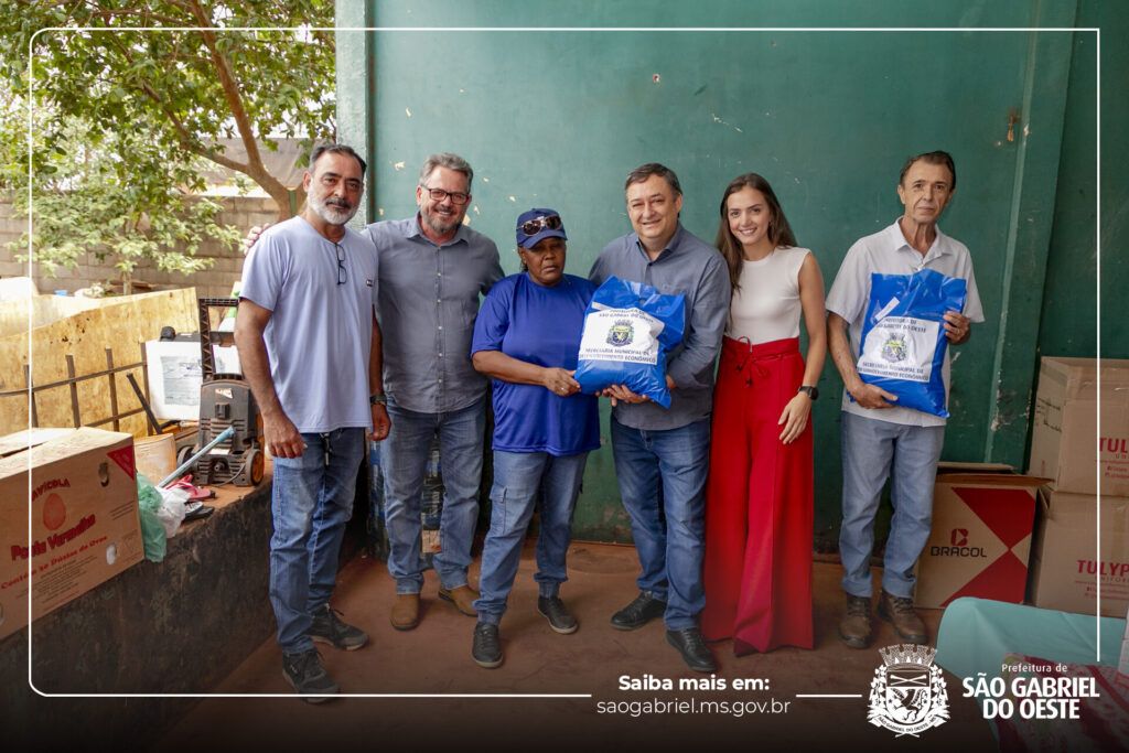 O prefeito de São Gabriel do Oeste, Leocir Montanha, visitou nesta segunda-feira (03) a Estação de Tratamento de Resíduos Sólidos da COOPERASGO, acompanhado da presidente do SAAE, Julia Bortolini, para realizar a entrega de novos uniformes e kits de Equipamentos de Proteção Individual (EPIs) aos colaboradores que atuam diariamente no manejo e tratamento dos resíduos do município.