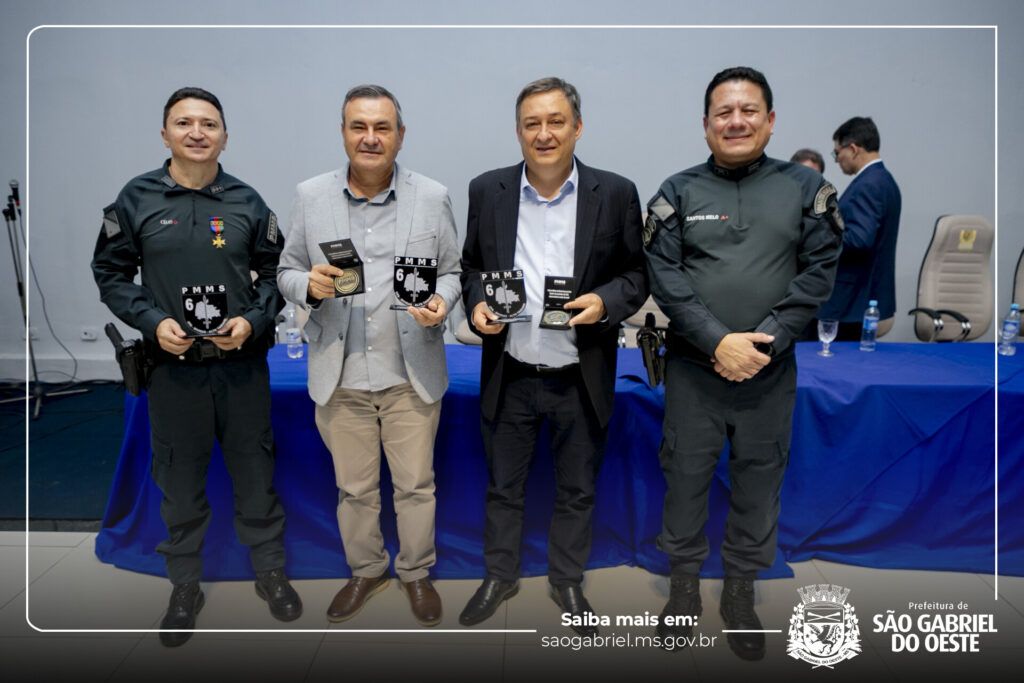 O prefeito de São Gabriel do Oeste, Leocir Montanha, esteve em Coxim participando da solenidade alusiva ao segundo aniversário do Comando de Policiamento de Área do Alto Taquari (CPA-6), ocasião em que foi agraciado com o Emblema do CPA-6 e a Medalha Comemorativa dos 190 anos da Polícia Militar de Mato Grosso do Sul, em reconhecimento à parceria institucional e ao apoio às ações de segurança pública na região.