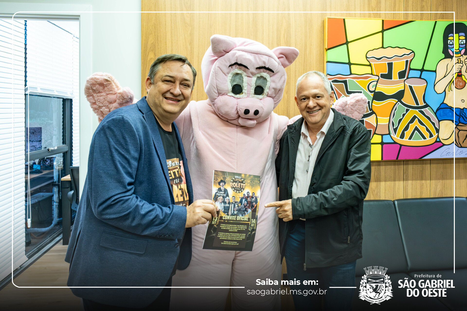 Na segunda-feira (11), o prefeito Leocir Montanha, acompanhado do secretário municipal de Cultura, Desporto e Turismo, Cleberson Xavier, da primeira-dama Cleire Arguelho e dos mascotes Torresmo e Pururuca, que se revezaram nas visitas, esteve com o governador em exercício, Barbosinha, para entregar o convite oficial da festa. O evento conta com o apoio do Governo do Estado, por meio da Fundação de Cultura de Mato Grosso do Sul, parceria fundamental para fortalecer e valorizar as tradições de São Gabriel do Oeste.