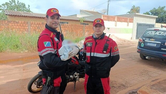 Recém-nascido foi encontrado abandonado dentro de uma caixa de papelão na esquina das ruas Congonhas do Campo e Areia Branca, no Bairro Aero Rancho.