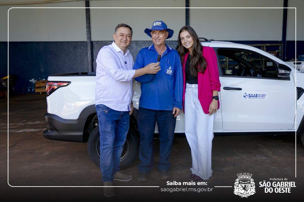O Serviço Autônomo de Água e Esgoto (SAAE) de São Gabriel do Oeste reforçou sua estrutura operacional com a aquisição de um veículo zero quilômetro, modelo picape de pequeno porte, adquirido com recursos próprios, fruto de economias realizadas ao longo do ano de 2025. O investimento total foi de R$ 112.000,00.