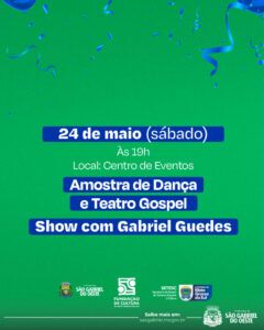 - 24 de maio (sábado) – Amostra de Dança, Teatro Gospel e Show