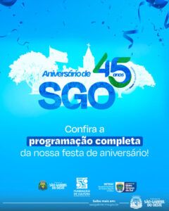 A Prefeitura Municipal convida toda a população para participar da programação comemorativa dos 45 anos de São Gabriel do Oeste.