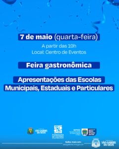 Feira Gastronômica e apresentações de grupos artísticos e culturais - 07 de maio (quarta-feira) – Apresentações das Escolas