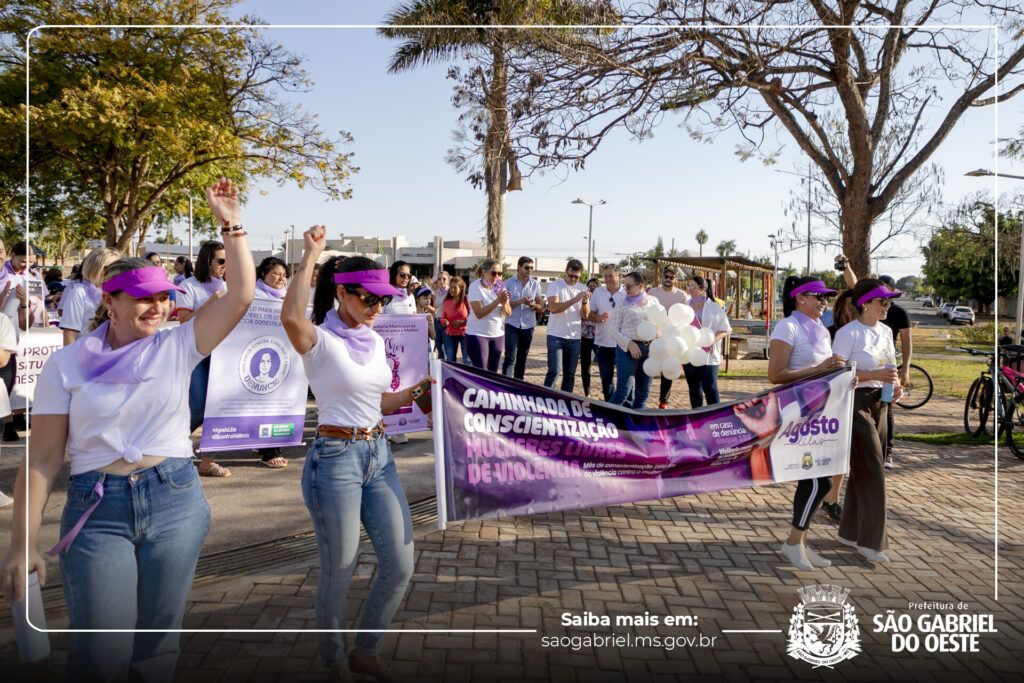 Com faixas, cartazes e mensagens de esperança, a população de São Gabriel do Oeste se uniu na tarde deste sábado (16) para a caminhada de conscientização pelo fim da violência contra a mulher. A ação integrou a programação do Agosto Lilás, campanha que busca sensibilizar a sociedade sobre a importância do enfrentamento a todas as formas de violência contra a mulher.