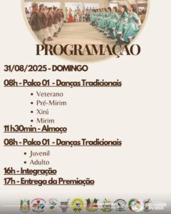 Já no domingo (31) acontecem as finais das categorias, com encerramento e cerimônia de premiação às 17h. Cultura, tradição e integração Além das apresentações artísticas e da disputa entre os grupos, o público poderá aproveitar a praça de alimentação, organizada pelos membros do CTG, que oferecerá almoços e lanches durante todo o festival.