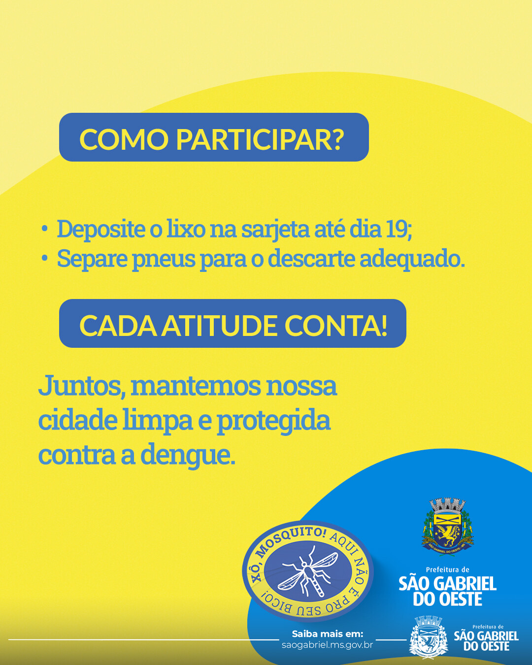 A Prefeitura de São Gabriel do Oeste conta com o engajamento da comunidade para tornar a cidade mais limpa, segura e saudável. Sua participação é fundamental para o sucesso dessa ação.