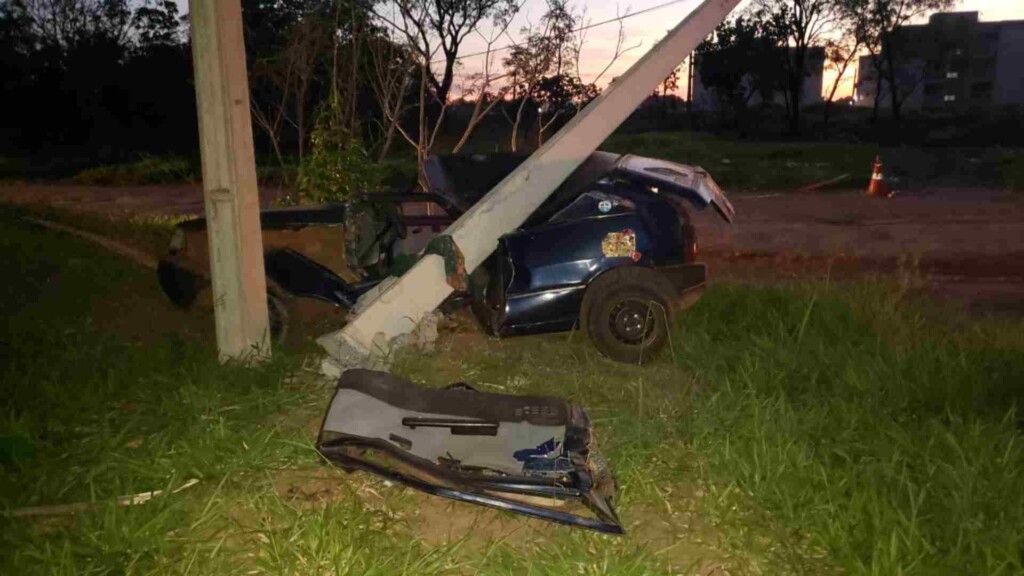 Na fuga, o trio acabou colidindo o carro contra o poste, destruindo o veículo e também derrubando o poste de energia. Eles ainda fugiram a pé e, quando a PM chegou, foi informada que eram três rapazes sem camisa.