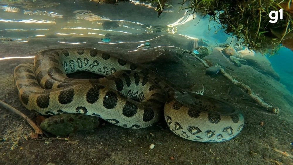 Uma sucuri, de aproximadamente 3 metros, foi vista passeando tranquilamente no fundo das águas de um rio de Bonito, na região sudoeste de Mato Grosso do Sul.