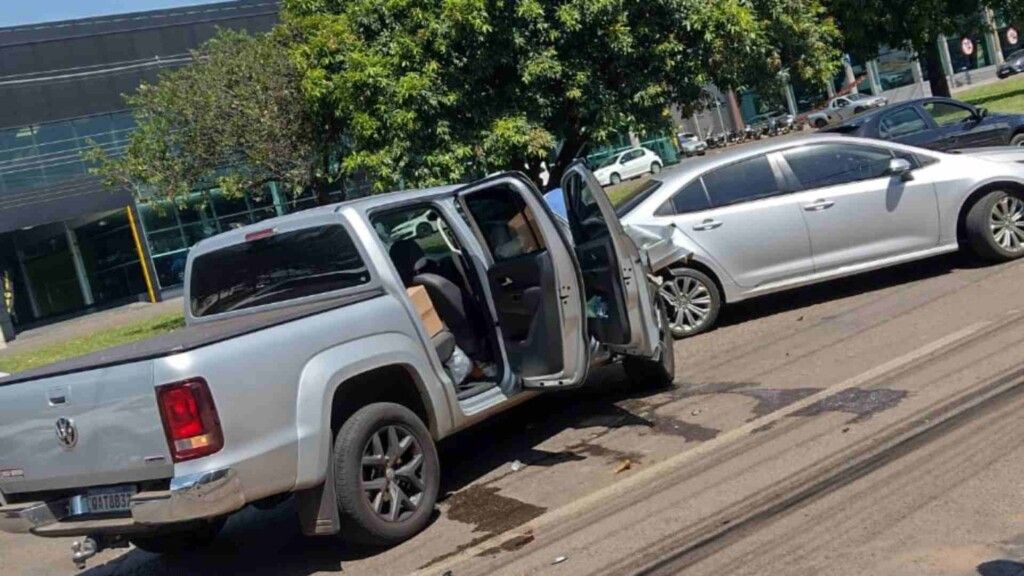 Na tarde desta sexta-feira (18), acidente de trânsito na Avenida Costa e Silva, entre as ruas Portugal e Paulo Freire, virou confusão após o motorista fugir do local. Ele estava bastante alterado e, segundo testemunhas, portava duas armas de fogo.